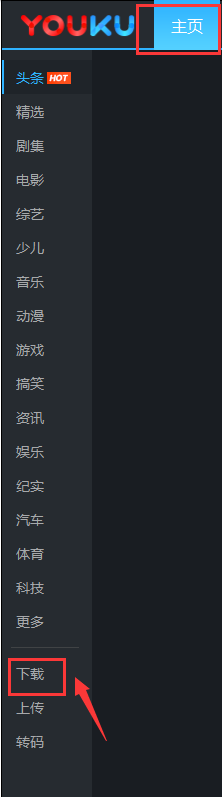 3、打开优酷pc客户端,选择左菜单栏的下载选项