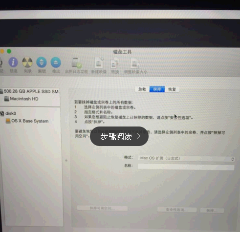5、点击第二个磁盘(Macintosh HD),如下图鼠标的位置所示。【注意】如果您安装了Windows双系统,那么下图会出现第三个磁盘(BOOTCAMP盘)这个不用抹掉。