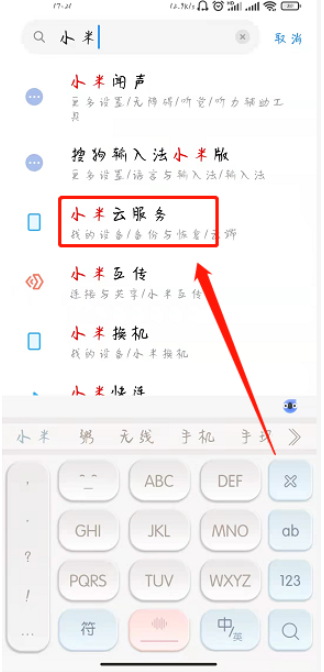 2、然后在设置搜索框内搜索【小米云服务】打开。
