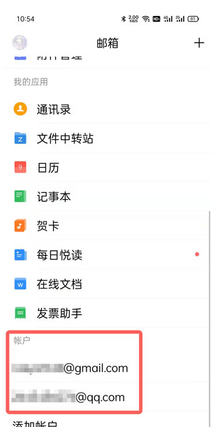 2、最下方就可以点击自己常用的邮箱账号,例如QQ邮箱账号进入。