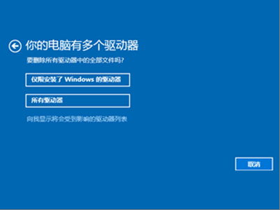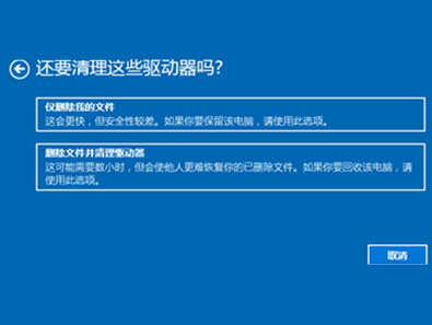 4、选择清理驱动的内容即可开始重置笔记本恢复出厂设置。