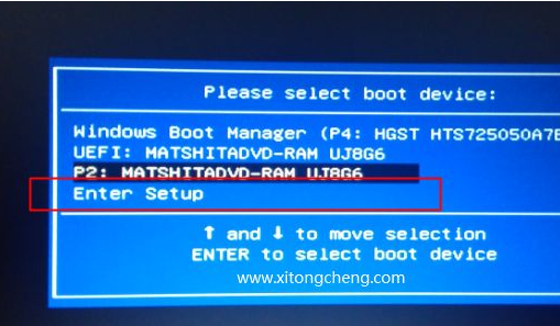 将电脑开机或者重启电脑,在启动过程中不停按ESC键。调出Please Select Boot Device,移动到Enter Setup这个项,按Enter键即可进入。