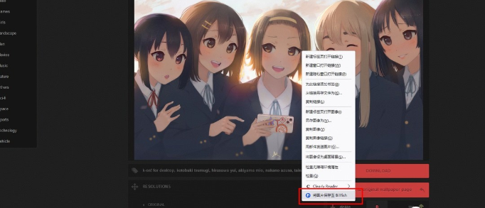 壁纸分类非常详细,例如日本动漫、3D、动物等。也可以通过下载量和评分来进行筛选。而且在每张图片上还标好了图片分辨率,下载没有任何套路,直接就能下载。找到想要的尺寸,然后鼠标右键选择图片另存为即可。