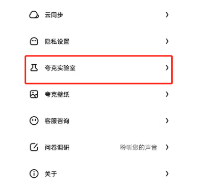 3、在设置列表中找到夸克实验室按键,点击进入。