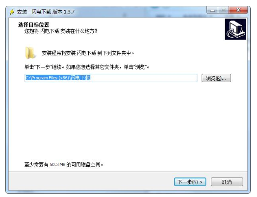 1.在华军软件园下载闪电下载官方版安装包,下载完成后解压文件,双击运行exe程序,随后进入安装向导,点击“浏览”选择安装位置,选定后点击下一步。