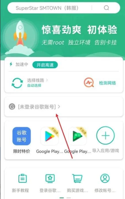 5、返回到OurPlay软件内,再次点击 “未登录谷歌账号” 。
