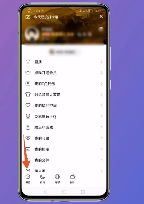 1、打开qq个人界面之后,点击设置切换到设置页面。