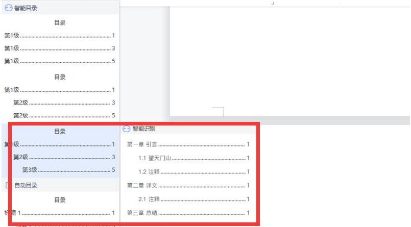 7、然后在智能目录中选择合适的级别目录,这时就会自动生成目录了。