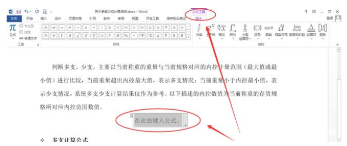 3. 这时文档中会出现一个输入公式的区域,同时主菜单栏显示【公式工具】。