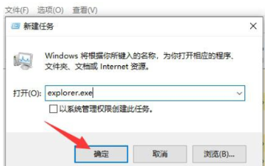 3、在运行框中输入命令explorer.exe,然后确定即可。