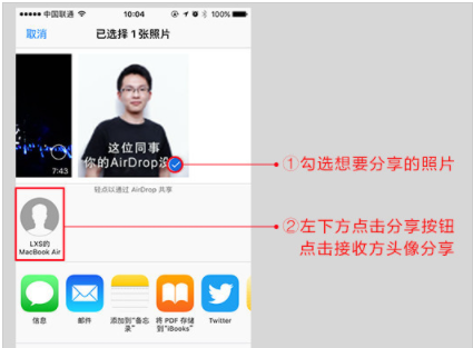 4、以隔空投送照片为例,打开【照片】,点击左下角,再点击隔空投送,选择要投送的手机。