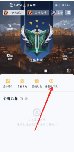 2、点击战绩,进入上方的体验服,点击体验服下载;