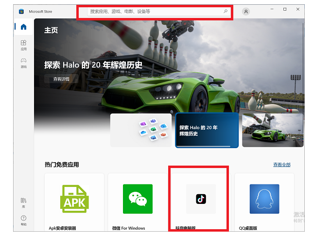 1、打开电脑自带的商店,查找【抖音电脑版】的软件,点击就可以进入。