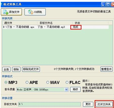 7、转换格式是mp3,在音乐质量的下拉菜单里,选择320kpbs码率就可以啦。