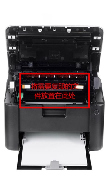 首先确保设备电源已经打开,接下来打开打印机上面的机盒盖,把需要复印的文件沿着边缘平整地放置在玻璃复印台上。