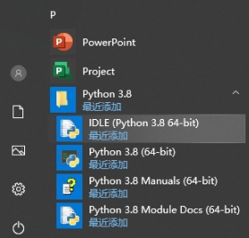 3.1.用交互式开发环境 IDLE,点击开始 找到程序菜单里的 Python,可以看到刚才安装的 Python,点击 IDLE: