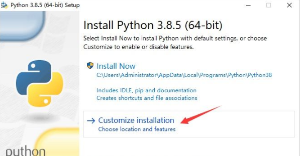 2.2.2 自己选择路径,需要点击下面的 Customize installation.