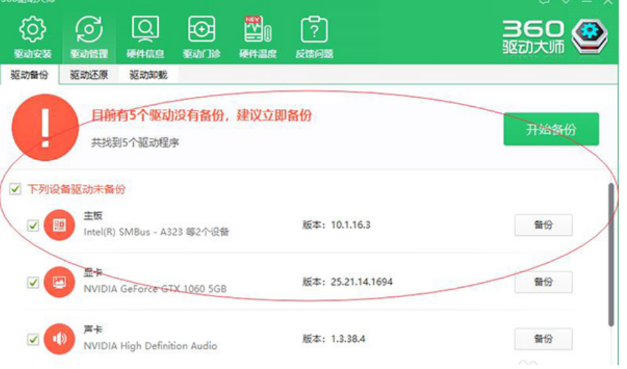 3、如果在更新驱动的时候如果想备份一下驱动,就点击一下开始备份。