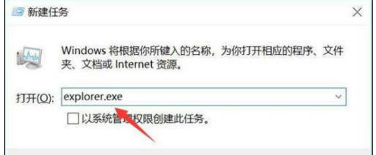 4、在窗口中输入“explorer.exe”,然后点击下方的确认即可。