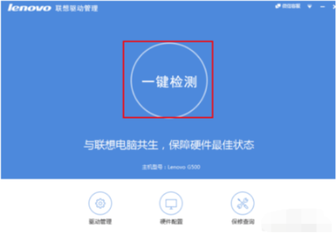 4. 启动联想驱动管理后,点击“一键检测”,检测时,建议不要进行其他操作,以免受到干扰。