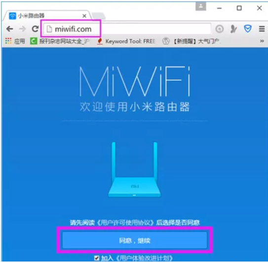 1、将小米路由器连接到电脑后开机,在浏览器中输入路由器设置网址回车进入路由器主界面。(小米路由器设置网址:miwifi.com,或者可以使用192.168.31.1,如果这两个都不对,可以把路由器翻过来,查看底部的标签,上面会有路由器的默认登录地址,以及账号密码设备名称等信息。)