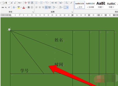 4、接着将鼠标放在表格上,开始绘制斜线啦。