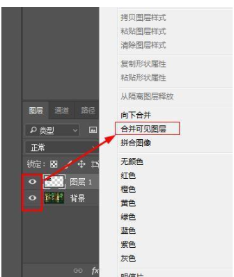 方法二:在第一张图层点击鼠标右击选择合并可见图层(会合并所有显示带“眼睛”的图层)。