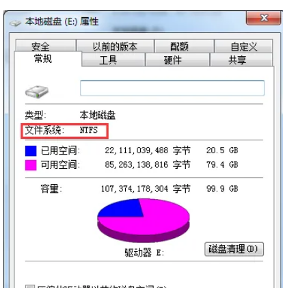 步骤8、转换成功后会有系统提示,可以点击盘符--属性中查看,已经是NTFS格式了,表示设置转换完成。