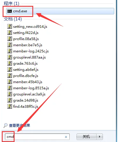步骤3、显示界面,然后点击结果中的cmd.exe。