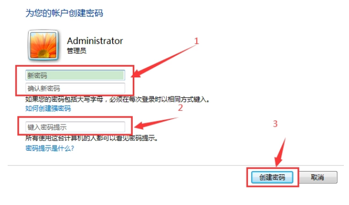 4、在新的界面里面按照提示输入相应的密码以及密码提示即可;