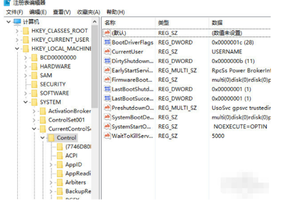 2、点击依次打开HKEY_LOCAL_MACHINE \ SYSTEM \ CurrentControlSet \ Control,选中之后看看右边是否有“StorageDevicePolicies”,如果没有的话就需要新建。