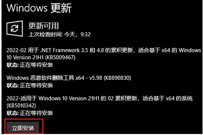4、此时可以点击右侧的检查更新,选择“立即安装”即可。