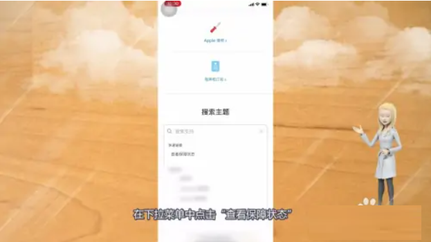 打开技术支持界面后点击对话框,在下拉菜单中点击“查看保障状态”。