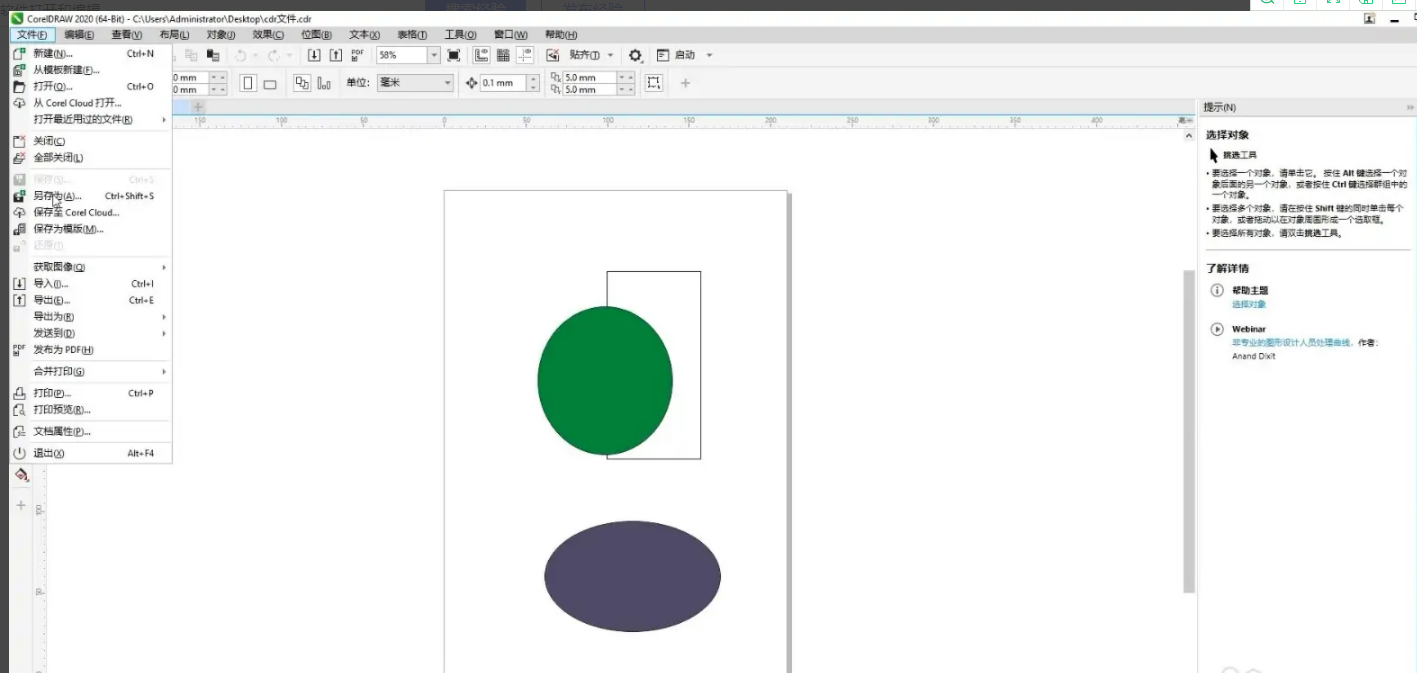 3、就可以将cdr文件打开了,点击文件下方的另存为就可以将文件保存下来了。