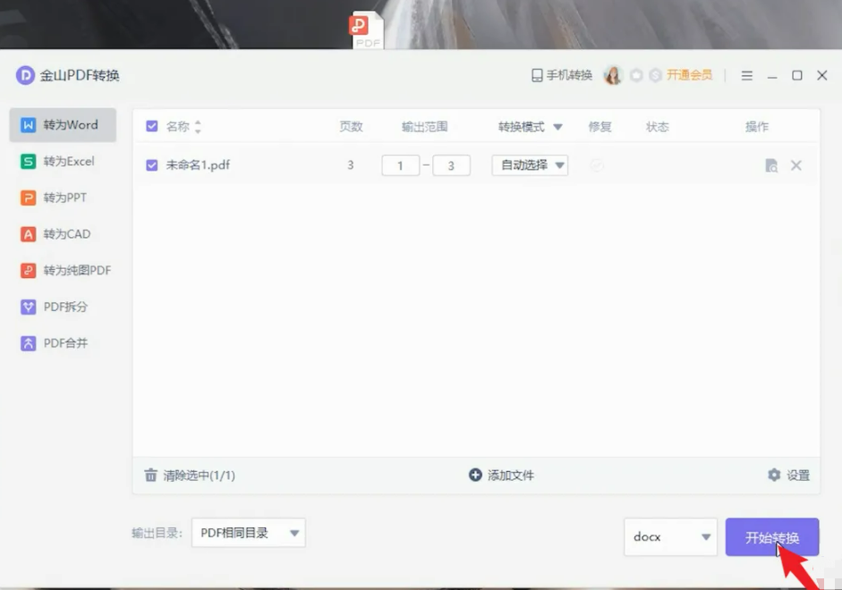 3、新的页面出现以后,点击直接选中下面弹出的开始转换。