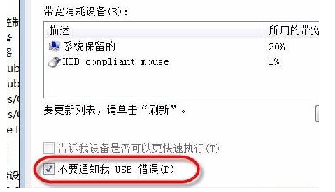 5、勾选“不要通知我USB错误”并保存即可。