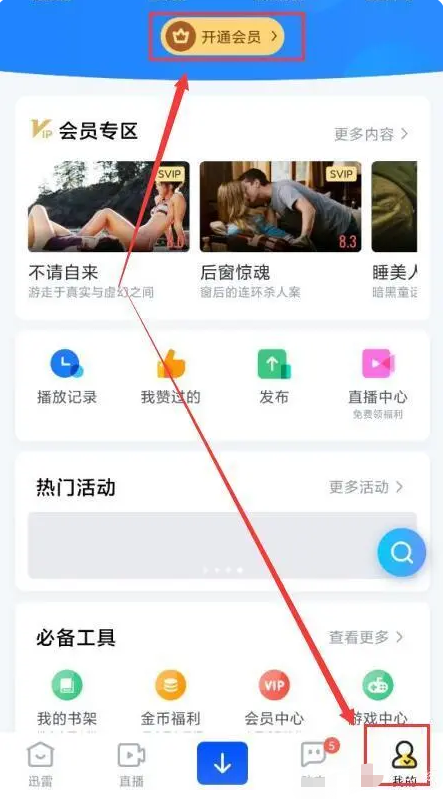 1、首先点击打开手机迅雷app,点击右下方【我的】-【开通会员】。