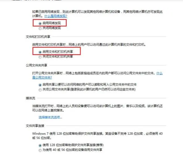 3、将启用网络发现、启用文件以及打印机共享、关闭密码保护共享三个都勾选上,点击保存设置即可。