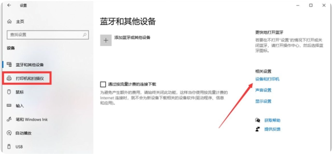 4、打开设置页面,再看到设备和打印机选项卡点击它。