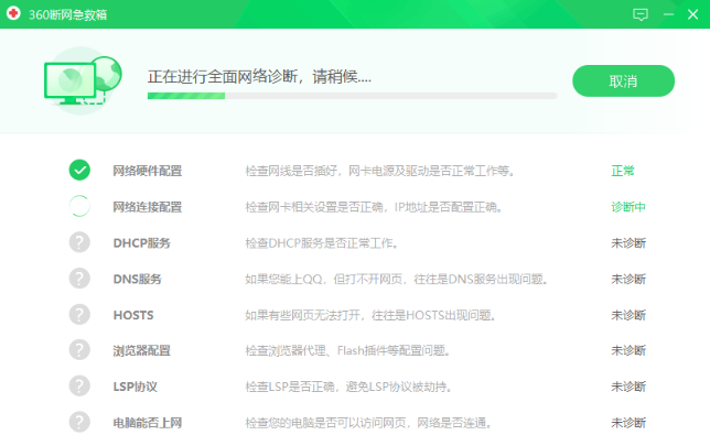 1、玩家steam下载速度慢也有可能是网络DNS出现异常或者hosts文件数据错误,这时需要借助工具对电脑网络进行原因诊断,可以使用360断网急救箱等工具来修复。