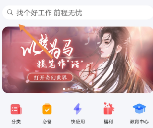 2、当来到"应用市场"首页之后,点击上方“放大镜”即可。