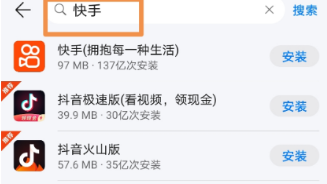 进入手机中的应用市场搜索快手下载: