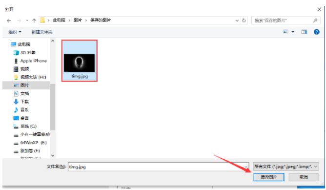 3、点击浏览后,选择图片按下面的“选择图片”就可以。
