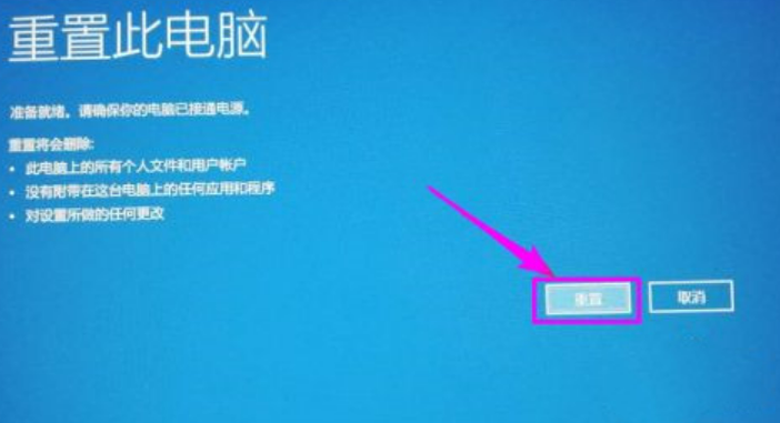 5、等待准备就绪后,点击“重置”。