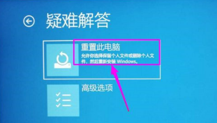 4、然后点击选择“重置此电脑”。