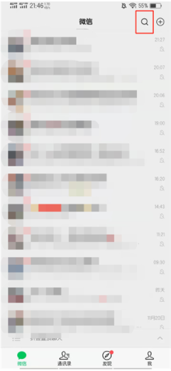 3、打开微信,点击搜索图标。