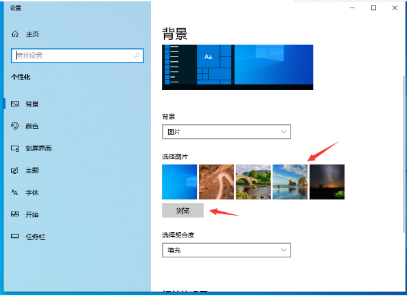 打开个性化页面,在背景下选择图片即可。