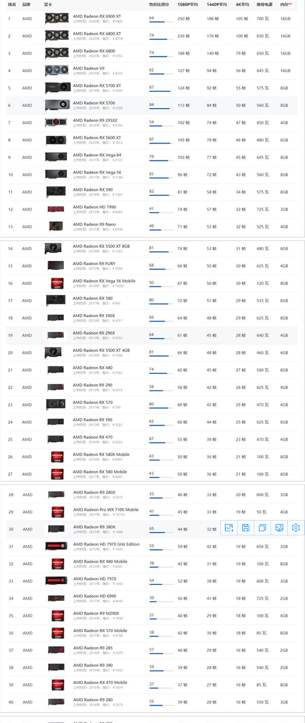 amd显卡天梯图2021新版介绍