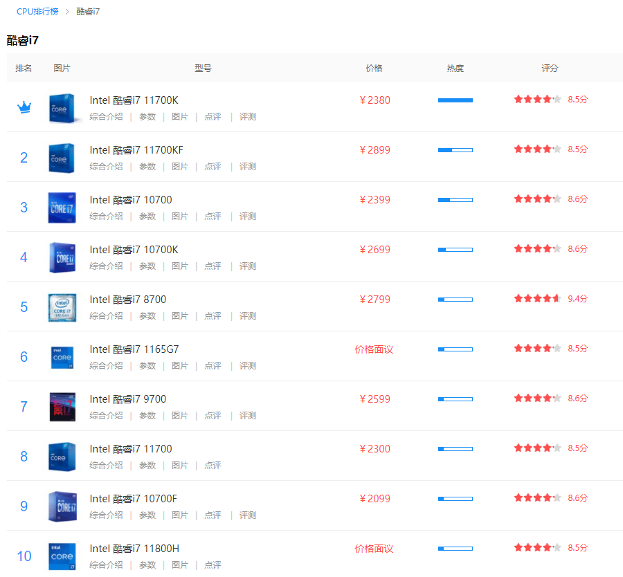 2021/08/14 酷睿i7处理器排行榜好用的酷睿i7处理器有哪些酷睿i7CPU排行榜