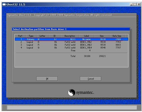 f.选择本机硬盘的系统盘分区(先把系统盘里的资料备份出来[为C:\Documents and Settings\Administrator(或其他用户)\桌面),